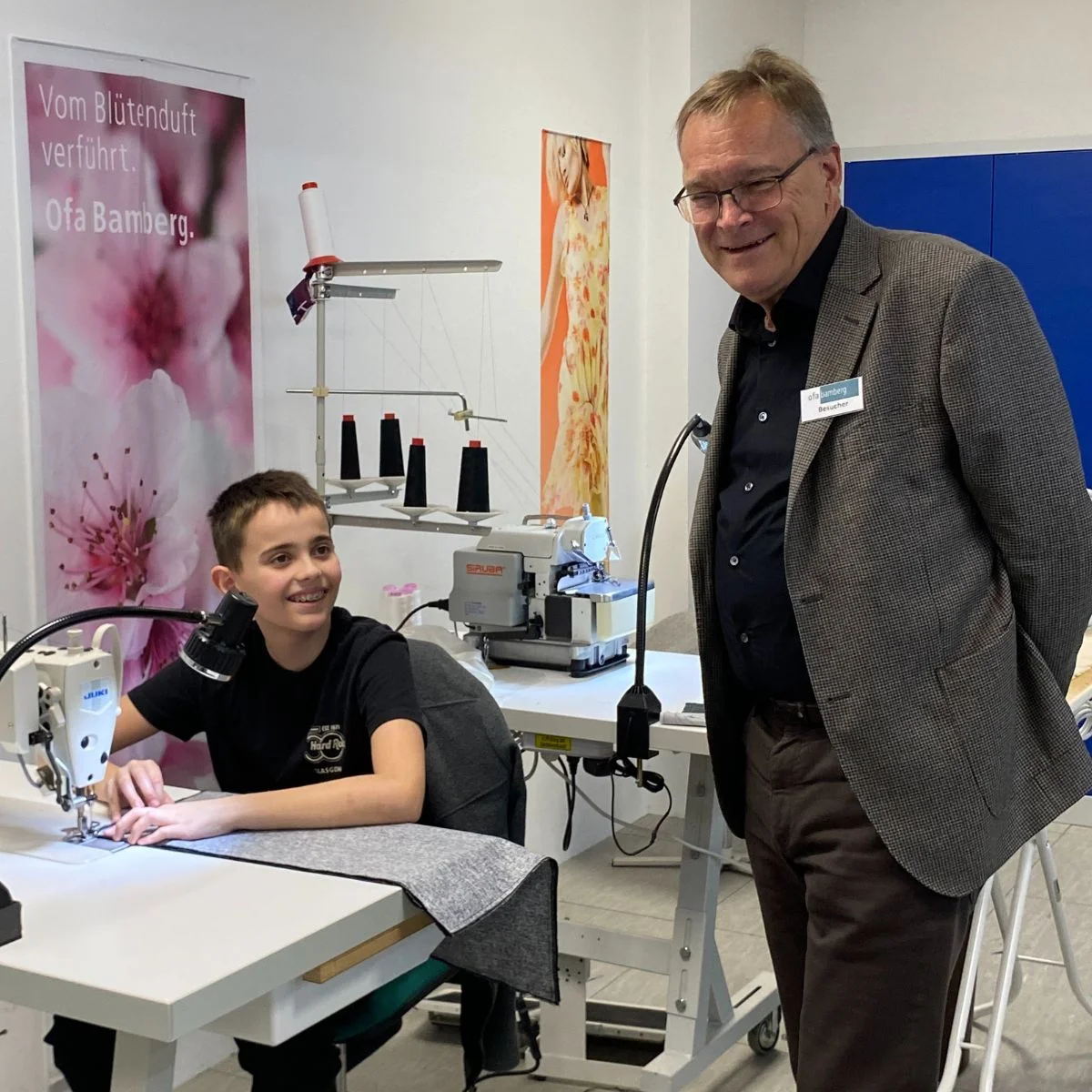 Zu Beginn gab es eine kurze Unternehmensvorstellung. Tatsächlich kannten einige der Schüler das Unternehmen und seine Produkte bereits. Bei einer Betriebsbesichtigung konnten sie sich hautnah davon überzeugen, wieviel Handarbeit in den Kompressionsstrümpfen steckt. Anschließend konnten die Jugendlichen in den Abteilungen selbst nähen, schrauben und färben, und so konnten z. B. die Jungs aus der Konfektion am Ende des Tages einen selbst genähten Turnbeutel als Erinnerungsstück mit nach Hause nehmen.